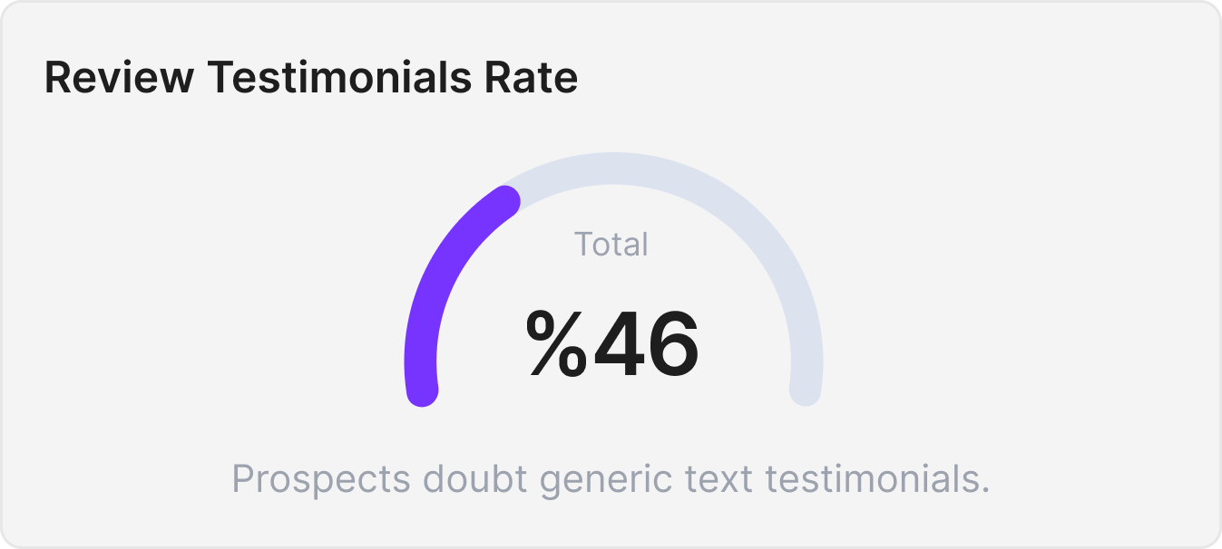 30% of online reviews are fake. 85% of prospects suspect they're reading fabricated testimonials. Video testimonials with face-recognition verification and visible trust badges eliminate doubt. Seeing a real person speak your praises builds credibility that text cannot manufacture.